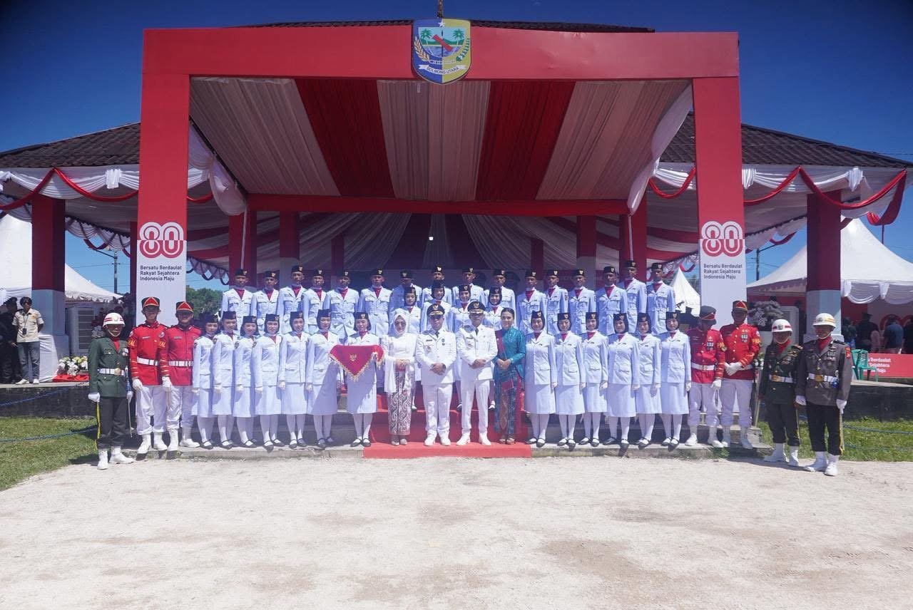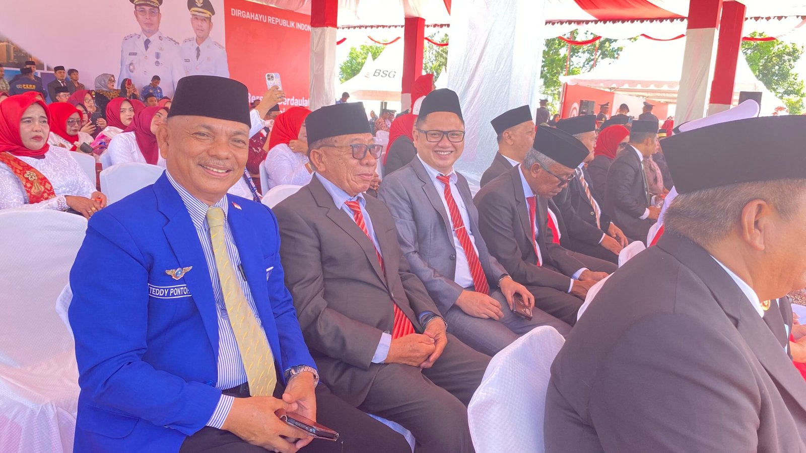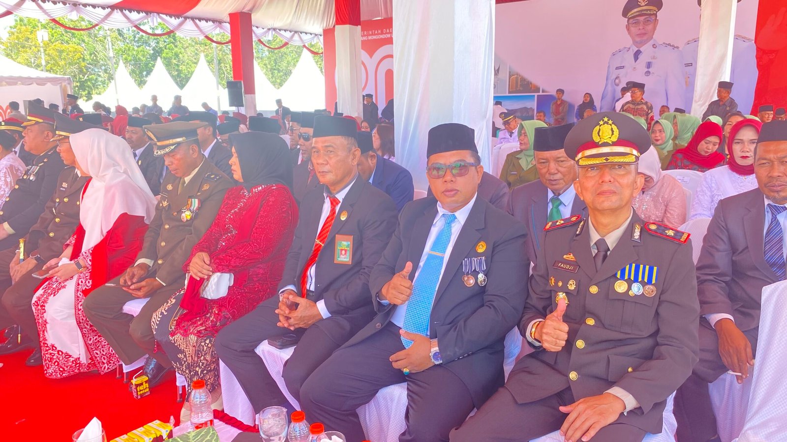 Ketua KPU, Ketua Bawaslu, Kepala BPJS, Kepala Pertanahan, para asisten, staf ahli bupati, tokoh presidium Pemekaran, kepala perbankan, Pimpinan OPD, para camat, tokoh masyarakat, tokoh agama, tokoh adat, pimpinan Ormas/OKP, sangadi, orang tua Paskibraka, para ASN dan siswa. *** GG