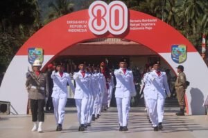 Bolmong Utara, Sulutnews.com – Bupati Bolaang Mongondow Utara (Boltara) Dr. Sirajudin Lasena, SE., M.Ec.Dev, sebagai Inspektur Upacara (Irup) pada Pengibaran Bendera Merah Putih dalam rangka peringatan Hari Kemerdekaan Republik Indonesia Ke-80 Tahun 2025, bertempat di Lapangan Kembar Boroko. Minggu (17/08/2025).