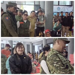 Legislator Sulut, Vionita Kuera ketika mendampingi Gubernur Sulut, Yulius Selvanus Komaling saat mengunjungi lokasi pengungsian di Musium Ulu Siau
