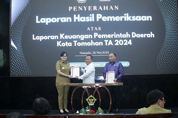 Tomohon,Sulutnews.com – Pemerintah Kota Tomohon kembali menorehkan prestasi membanggakan dengan meraih opini Wajar Tanpa Pengecualian (WTP) dari Badan Pemeriksa Keuangan Republik Indonesia (BPK-RI) atas Laporan Keuangan Pemerintah Daerah (LKPD) Tahun Anggaran 2024. Prestasi ini merupakan kali ke-12 secara berturut-turut sejak tahun-tahun sebelumnya.