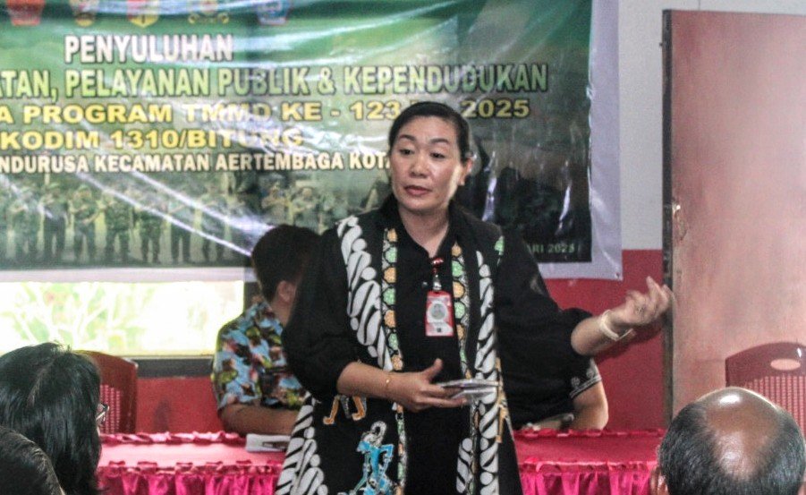 Bitung, Sulutnews.com – Melaksanakan program Non Fisik oleh Satgas TMMD Kodim 1310/Bitung, melalui pemaparan materi tentang kesehatan, pelayanan publik dan kependudukan di ikuti oleh masyarakat di Kelurahan Tandurusa, Kec Aertembaga, Kota Bitung. Kamis(27/02/25).