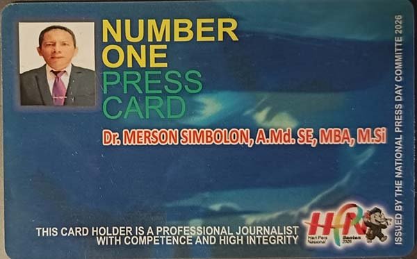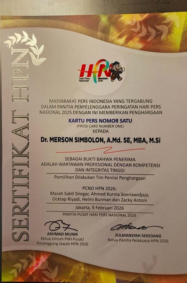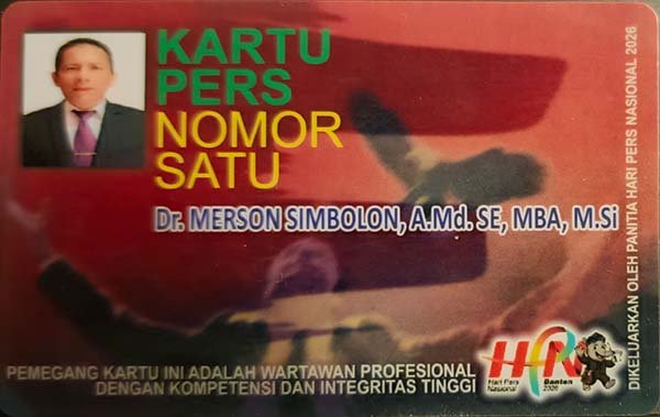 Setelah lolos proses seleksi dan penjaringan oleh panitia, Sekretaris Persatuan Wartawan Indonesia (PWI) Provinsi Sulawesi Utara, Merson Simbolon akhirnya dinyatakan layak menerima kartu pers nomor satu (PCNO) yang diserahkan pada puncak HPN 2026 Banten.