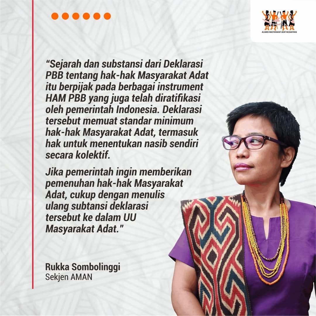 “RUU ini menjadi jalan satu-satunya negara untuk memahami masyarakat adat. RUU tidak jalan karena ya tokoh adat, agama, ahli tidak dilibatkan,” tambahnya.