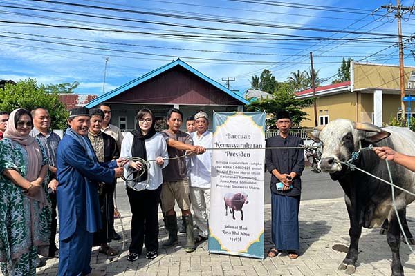 Wakil Walikota menutup sambutannya dengan penyerahan simbolis hewan kurban tersebut, serta mengucapkan selamat menyongsong Hari Raya Idul Adha 1446 Hijriah atas nama keluarga Senduk-Karundeng dan Warouw-Rumajar.