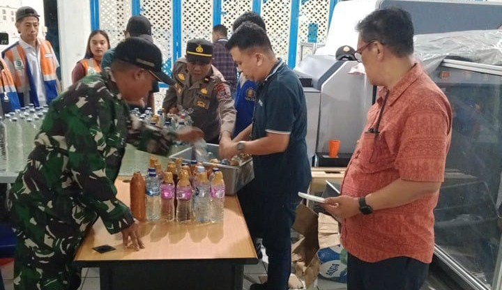 Dari hasil pemeriksaan langsung, dipastikan puluhan botol air mineral tersebut berisikan minuman keras(miras) jenis Cap Tikus yang tidak diketahui siapa pemiliknya.