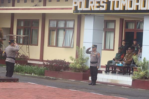 Bertindak sebagai Inspektur upacara Kapolres Tomohon AKBP Nur Kholis, S.IK., membacakan amanat Kepala Kepolisian Daerah Sulawesi Utara Irjen Pol Roycke Harry Langie, S.I.K., Μ.Η.