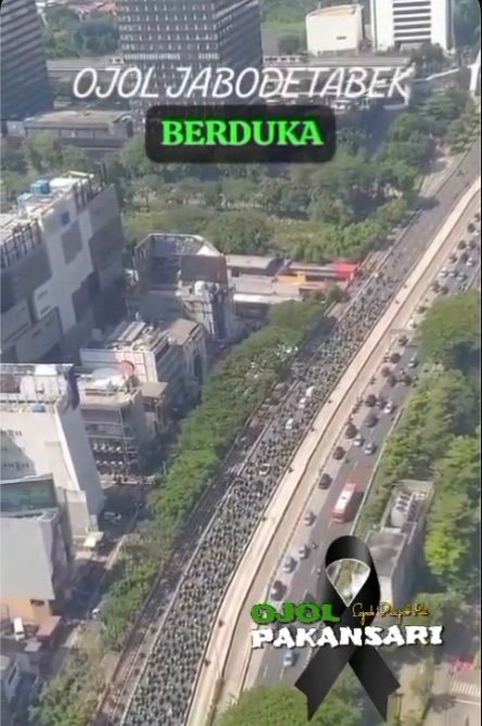 Dari tayangan medsos, pimpinan organisasi pengemudi ojol bertekad “Satu tersakiti ribuan siap turun ke jalan sampai kapolri memberikan keadilan, jangan sakiti ojol.”