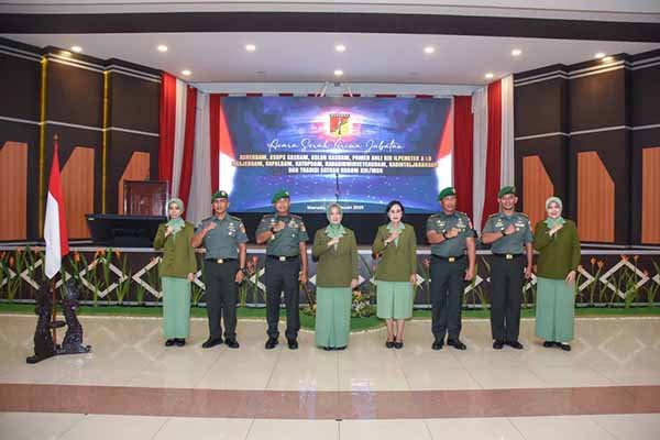 Turut hadir Kasdam XIII/Merdeka Brigjen TNI Yustinus Nono Yulianto, Irdam Brigjen TNI Bagus Suryadi Tayo, Kapoksahli Brigjen TNI Wakhyono, para Danrem, Asisten, Dan/Kabalak serta Ibu Ketua Persit Kartika Chandra Kirana Daerah XIII/Merdeka Ny. Evi Suhardi beserta pengurus. (*/Merson)