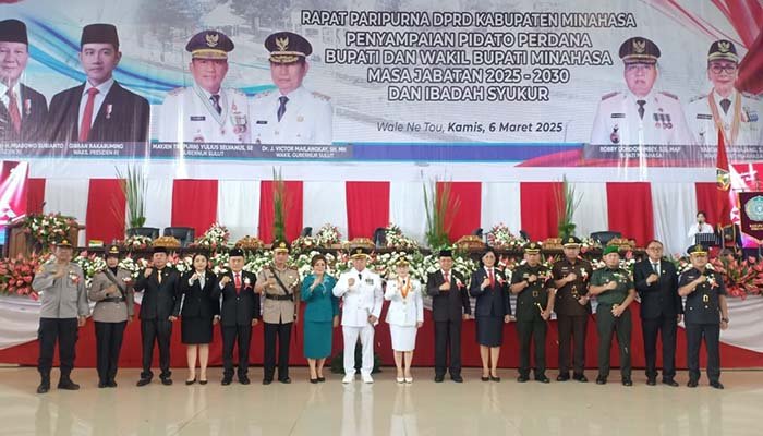 Minahasa,Sulutnews.com – Pemerintah Kabupaten Minahasa bersama Dewan Perwakilan Rakyat Daerah (DPRD) Minahasa menggelar Rapat Paripurna Penyampaian Pidato Perdana Bupati dan Wakil Bupati Minahasa masa jabatan 2025-2030 di Gedung Wale Ne Tou Minahasa, Kamis (6/3/2025).