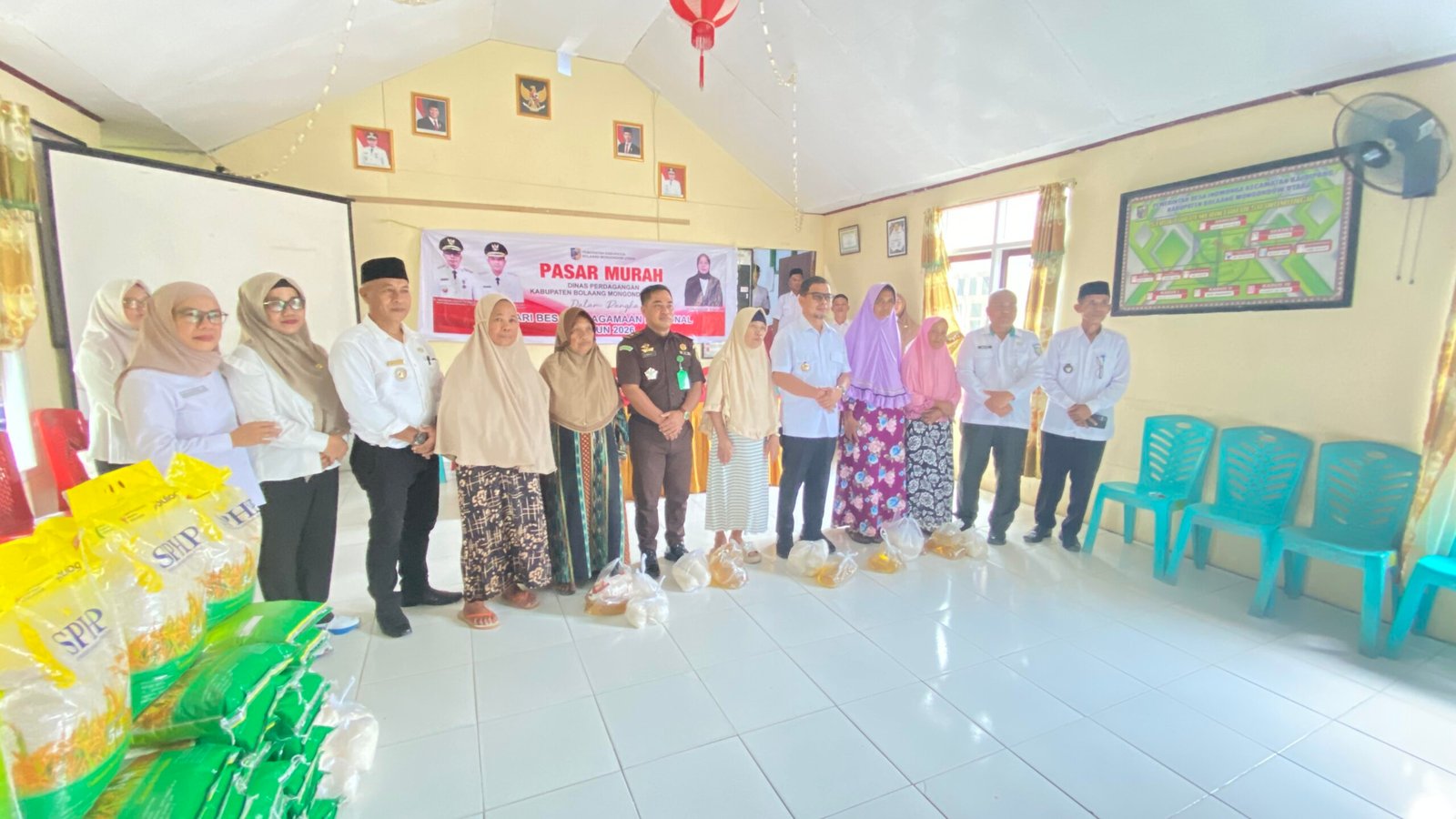 Diakhir kegiatan Bupati Boltara menyerahkan secara simbolis komoditi pasar murah kepada masyarakat yang telah membeli bahan pangan dengan harga terjangkau dipasar murah tersebut.