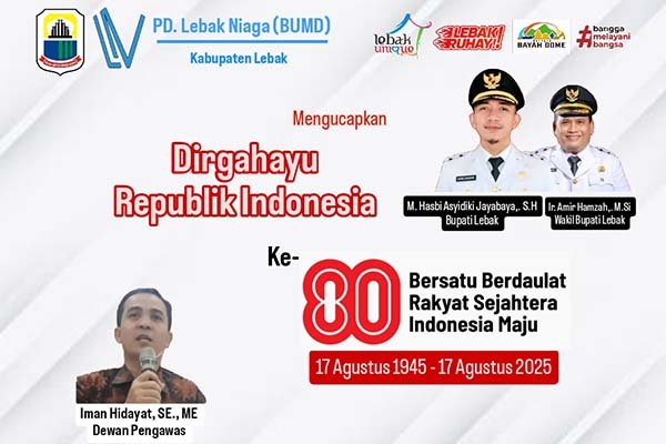Dengan mengucapkan Dirgahayu RI ke-80 Tahun, Iman Hidayat sebagai Dewan Pengawas PD. Lebak Niaga mengajak seluruh masyarakat untuk terus merawat semangat kemerdekaan dan berkontribusi dalam memajukan daerah dan bangsa.(Abdul)