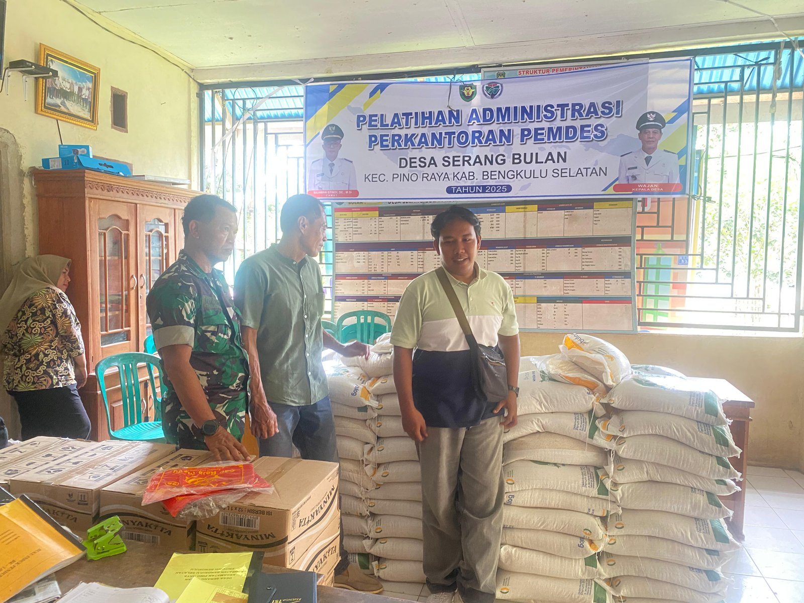 Kantor desa serang bulan kecamatan Pino raya menjadi pusat distribusi bantuan beras, sebuah upaya yang terkoordinasi dengan baik oleh pihak desa, dan juga dibantu oleh Tim yang terdiri dari perangkat desa serang bulan.