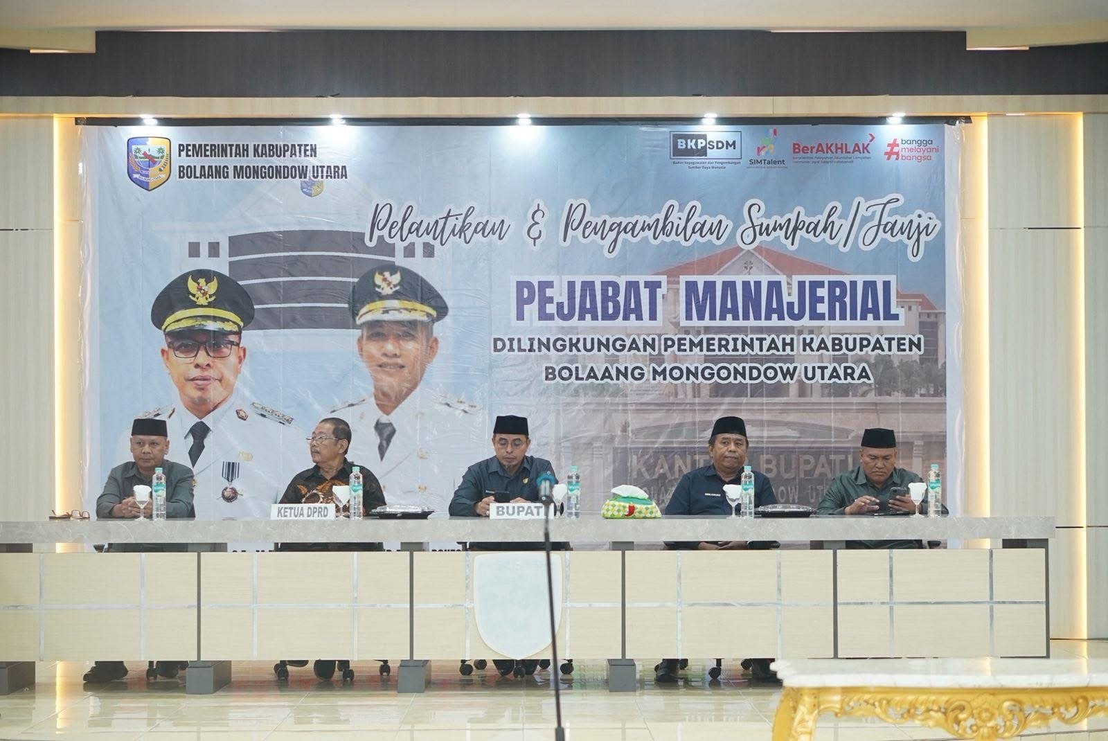 Bupati Bolmong Utara Sirajudin Lasena melantik dan mengambil sumpah 68 Pejabat Manajerial Eselon III & IV Pemkab Bolmong Utara.