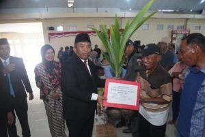 – Bantuan bidang perkebunan berupa bibit kelapa sebanyak 6.000 batang dan pupuk NPK sebanyak 955 kg untuk 8 kelompok tani.