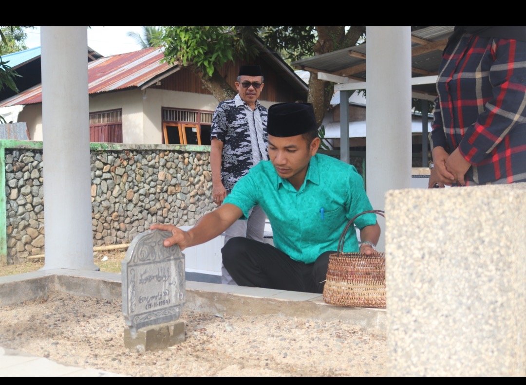 Foto : Wabup Moh. Aditya memegang pusara Raja Ram Suit Pontoh