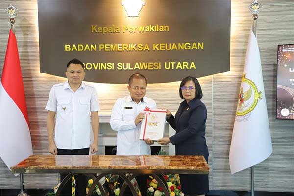Manado|| SulutNews.Com – Penyerahan dilaksanakan di Kantor BPK RI Perwakilan Sulawesi Utara, Manado, Rabu (14/01/26) dan diserahkan Kepala Perwakilan BPK RI Sulawesi Utara Bombit Agus Mulyo kepada Bupati Mitra Ronald Kandoli dan Ketua DPRD Mitra Sophia Antou.