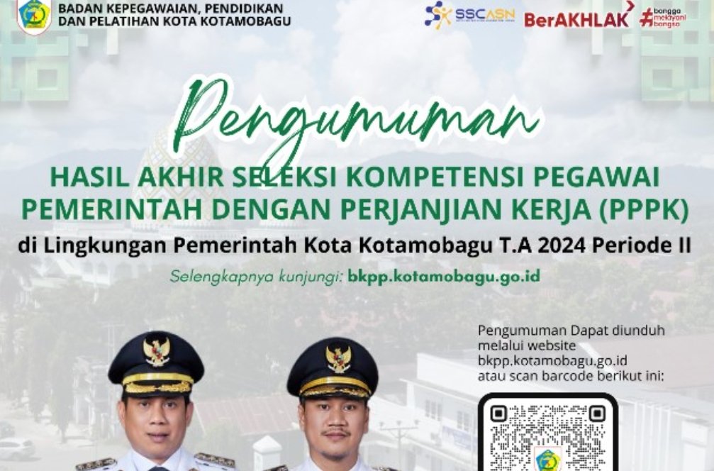 Pemkot Kotamobagu juga mengimbau kepada peserta seleksi untuk terus memantau informasi lanjutan terkait tahapan pemberkasan dan penetapan Nomor Induk PPPK yang dapat diakses melalui kanal informasi resmi pemerintah daerah.