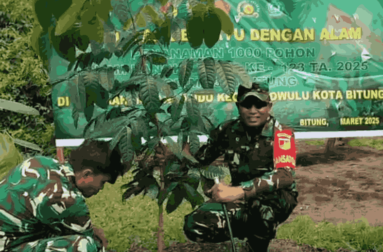 Bitung, Sulutnews.com, – Sebagai bagian dari kegiatan TNI Manunggal Membangun Desa (TMMD) ke-123, Satgas TMMD Kodim 1310 Bitung mengadakan aksi penanaman 1.000 bibit pohon di Kelurahan Ranowulu, Kecamatan Danowudu. Selasa(18/03/25).