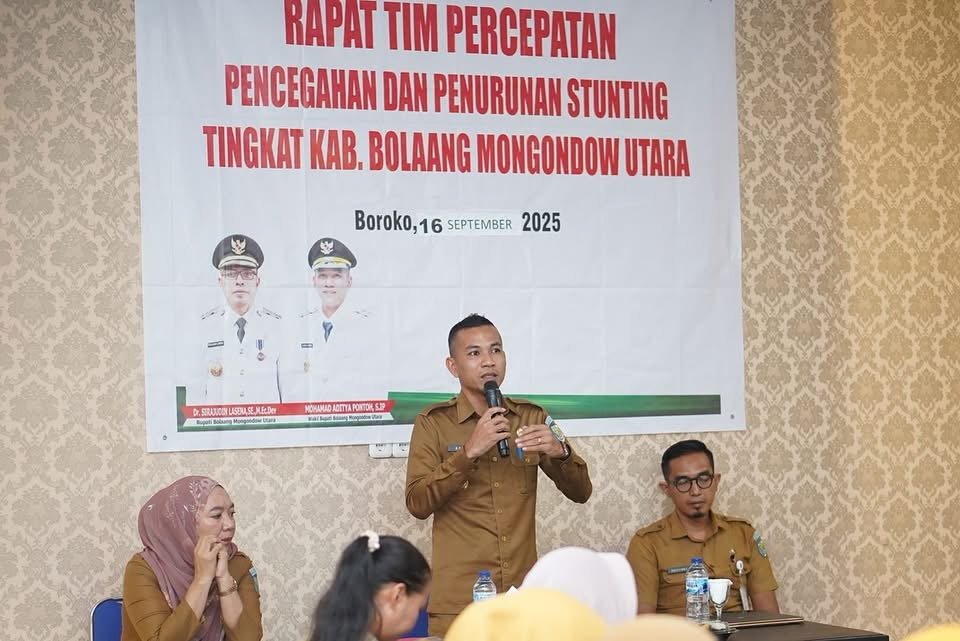 Bolmong Utara, Sulutnews.com – Wakil Bupati Bolaang Mongondow Utara (Boltara), Moh. Aditya Pontoh, S.IP pimpin rapat evaluasi semester pertama Tim Percepatan Pencegahan dan Penurunan Stunting (TP3S) Kabupaten Boltara, bertempat di ruang rapat Dinas PPKBPPPA. Selasa (16/09/2025).