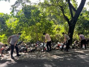 Minsel, Sulutnews.com — Kepedulian personel jajaran Polres Minahasa Selatan (Minsel) menyikapi kondisi lingkungan pada musim penghujan, diwujudkan dengan menggelar kerja bakti membersihkan tumpukan sampah di Jalan Trans Sulawesi, Wilayah Kabupaten Minsel pada Selasa pagi (28/1/2025).