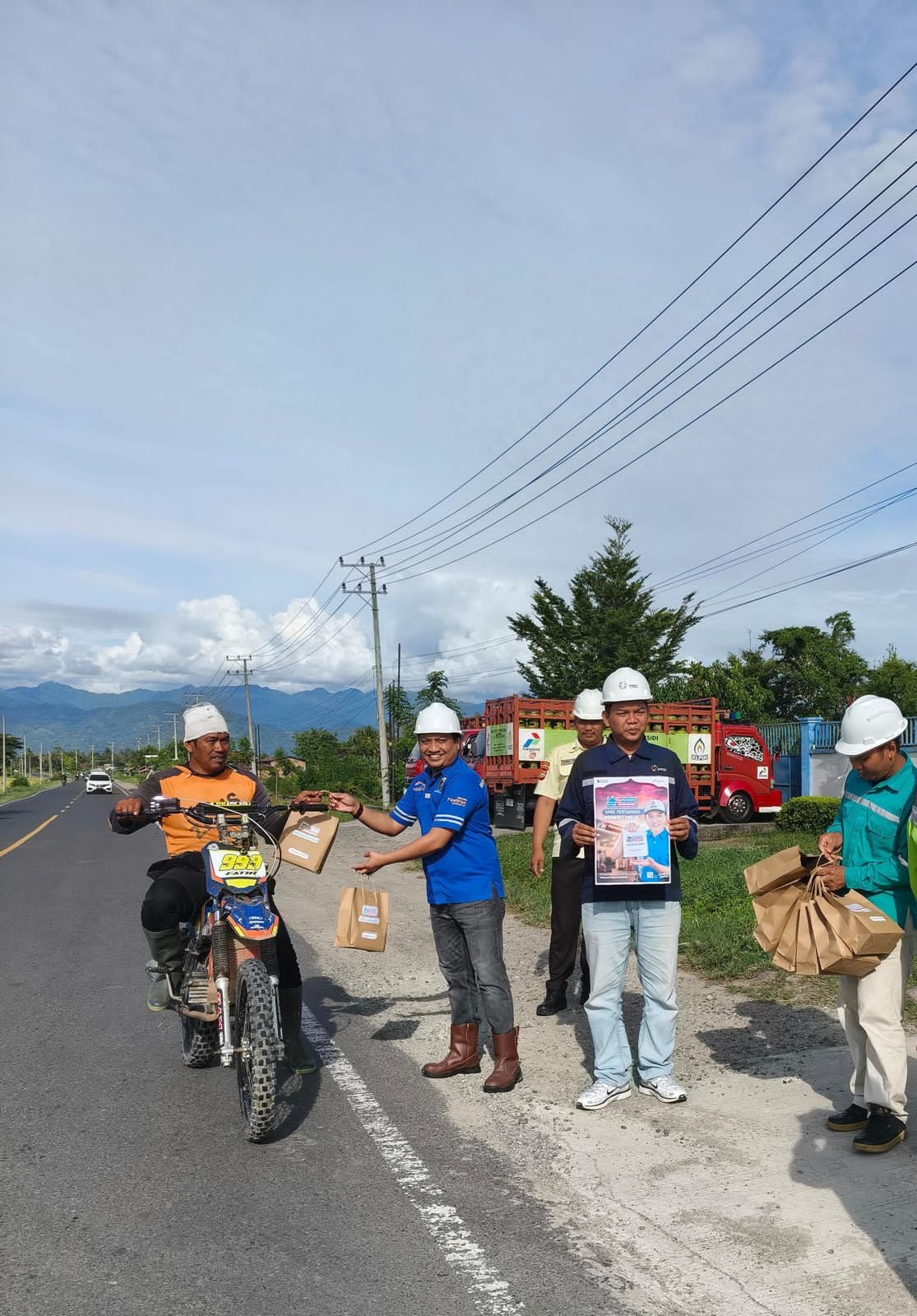 Pembagian dilakukan menjelang waktu berbuka puasa, menyasar pengendara, pekerja lapangan, hingga masyarakat sekitar pangkalan dan SPBE. Kegiatan berlangsung sederhana, namun penuh interaksi hangat antara petugas, mitra, dan warga.