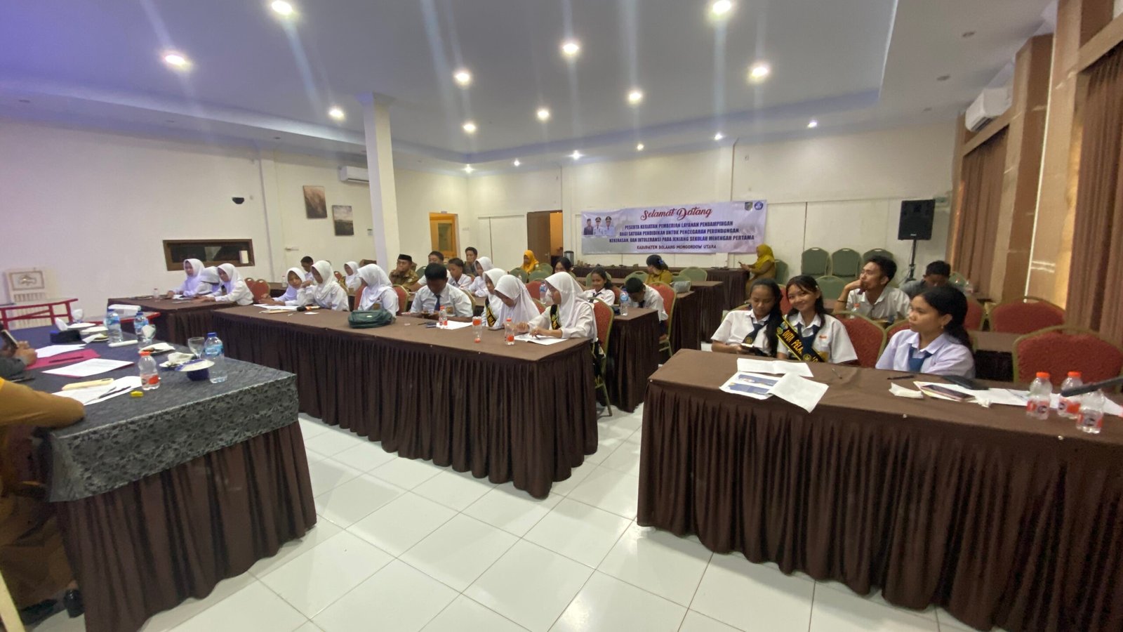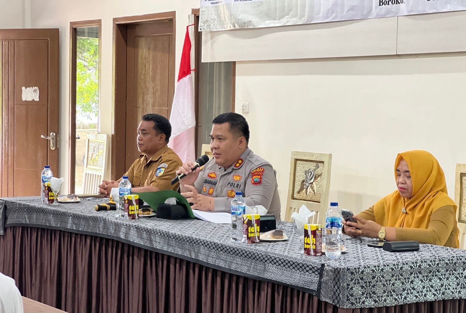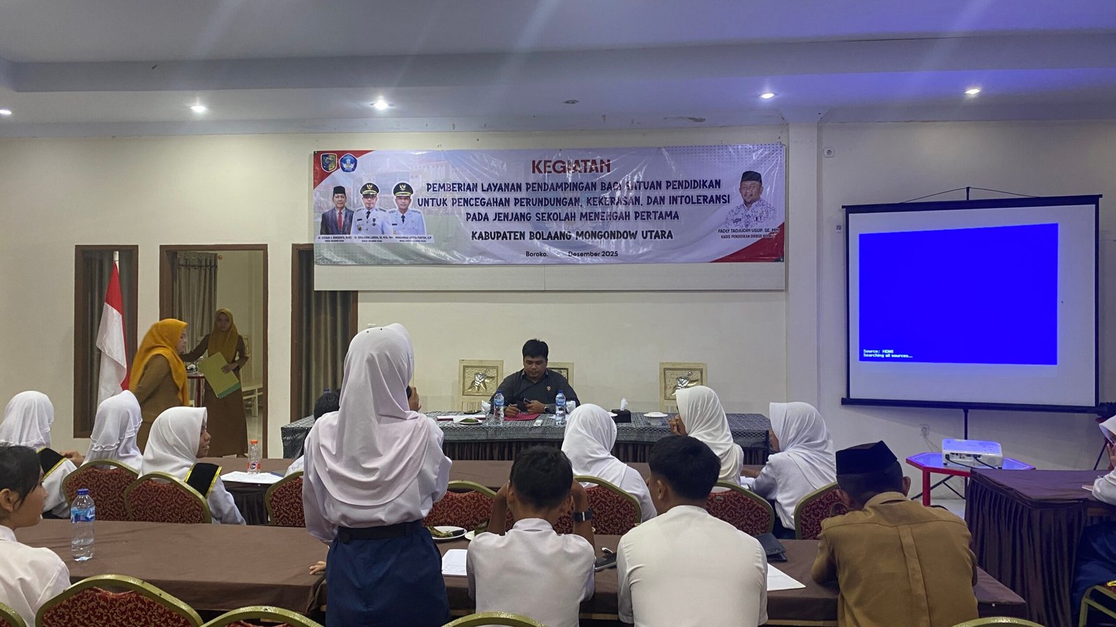 Penjelasan Kapolres Bolmong Utara bersama pejabat Dinas Dikbud dalam acara dengan tema “Pemberian layanan pedampingan bagi satuan pendidikan untuk pencegahan perundungan, kekerasan, dan intoleransi pada jenjang sekolah menengah pertama (SMP).”