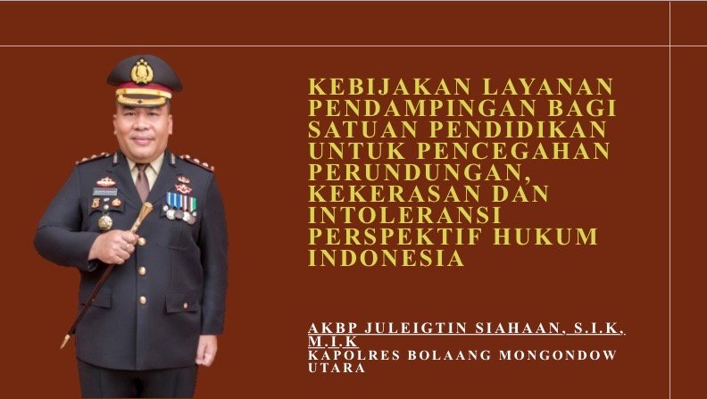 Kapolres Bolmong Utara menyampaikan, untuk menangani kekerasan di lingkungan pendidikan perlu dilakukan secara terpadu dengan melibatkan berbagai pemangku kepentingan.