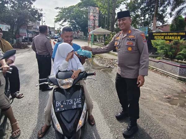 Asahan,Sulutnews.com – Bentuk kepedulian Polisi terhadap masyarakat dalam menghadapi bulan suci ramadhan 1546 H Jln. Protokol Air Joman depan kantor Polsek, pada hari Jumat (07/3/2025 )pukul 15.00.wib Personil Polsek Airjoman beserta ibu ranting Bhayangkari membagi bagi Takjil bagi masyarakat pengguna jalan.