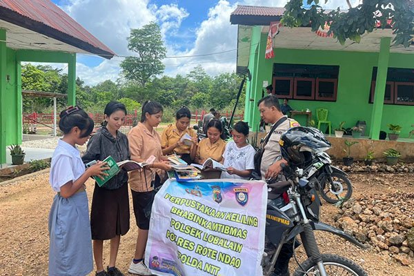 Rote Ndao,Sulutnews.com – Dalam upaya meningkatkan minat baca dan budaya literasi di kalangan generasi muda, Kepolisian Sektor (Polsek) Lobalain, Polres Rote Ndao, Polda NTT, menggelar kegiatan perpustakaan keliling di SMTK Lobalain, Dusun Nauhadoen, Desa Lekunik, pada Kamis, 20 November 2025, pukul 10.15 WITA.