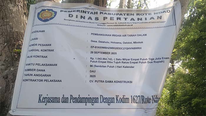 Rote Ndao,Sulutnews.com — Proyek pembangunan irigasi air tanam dalam di Kabupaten Rote Ndao yang dikerjakan oleh CV. Putra Gama Konstruksi dengan anggaran mencapai Rp1.043.064.742 (satu miliar empat puluh tiga juta enam puluh empat ribu tujuh ratus empat puluh dua rupiah) yang bersumber dari Dana Alokasi Umum (DAU) dinilai tidak sesuai dengan spesifikasi atau Rencana Anggaran Biaya (RAB) yang telah ditetapkan.
