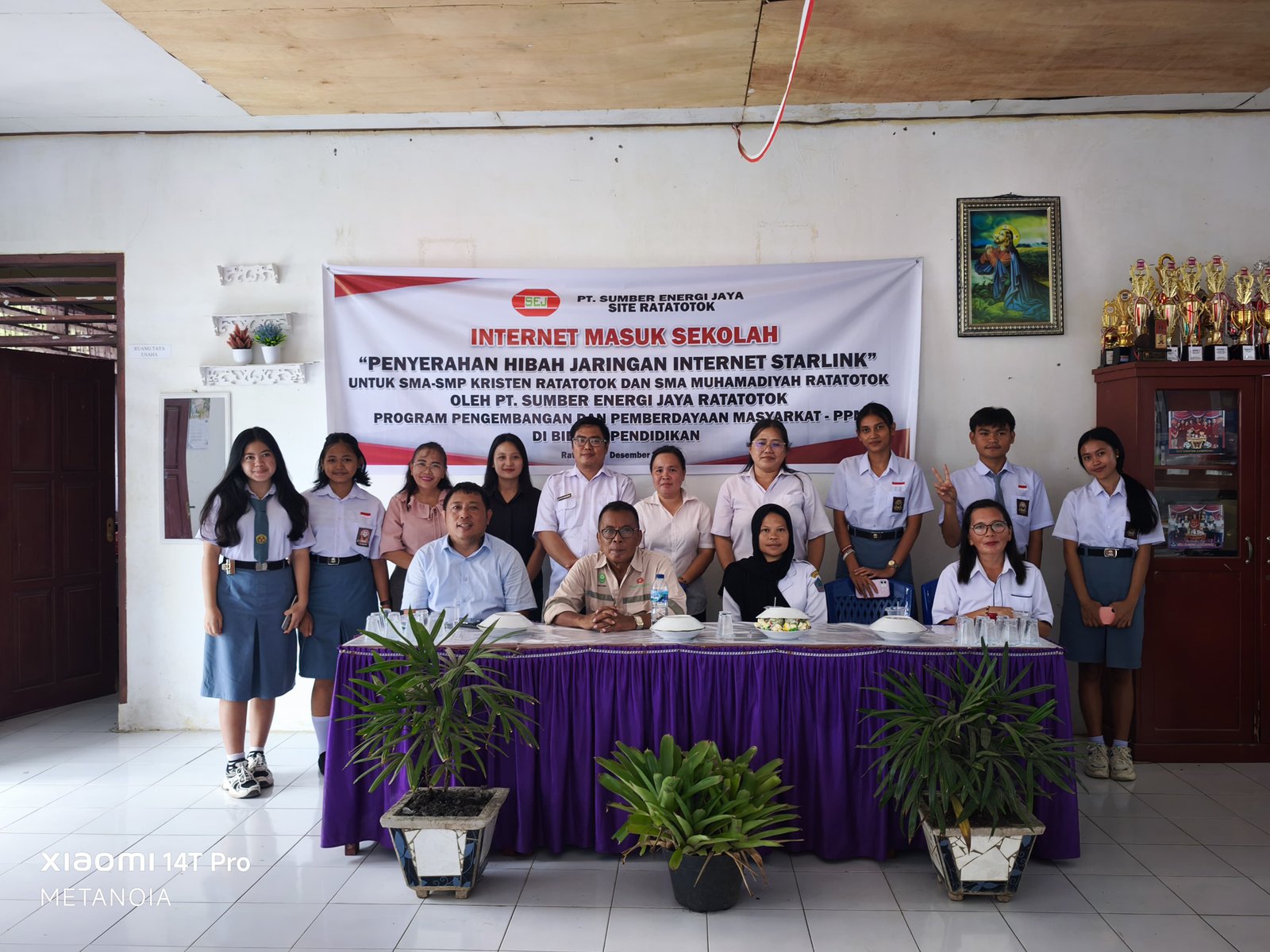 MITRA, Sulutnews.com —  Sebagai wujud nyata komitmen dalam mendukung kemajuan pendidikan di Sulawesi Utara, PT Sumber Energi Jaya (PT SEJ) memberikan bantuan jaringan internet kepada tiga sekolah di Ratatotok, yakni SMA Kristen Ratatotok, SMP Kristen, dan SMA Muhammadiyah Ratatotok. inisiatif ini merupakan bagian dari tanggung jawab sosial perusahaan untuk membantu pemerataan akses pendidikan di wilayah Ratatotok.