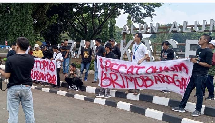 Dengan membawa spanduk bertuliskan “Stop Kekerasan Pers” dan “Pecat Oknum Brimob Arogan”, para jurnalis menuntut agar pelaku segera ditangkap dan diproses hukum. Mereka menilai tindakan represif tersebut mencederai demokrasi sekaligus menjadi ancaman serius bagi kebebasan pers.