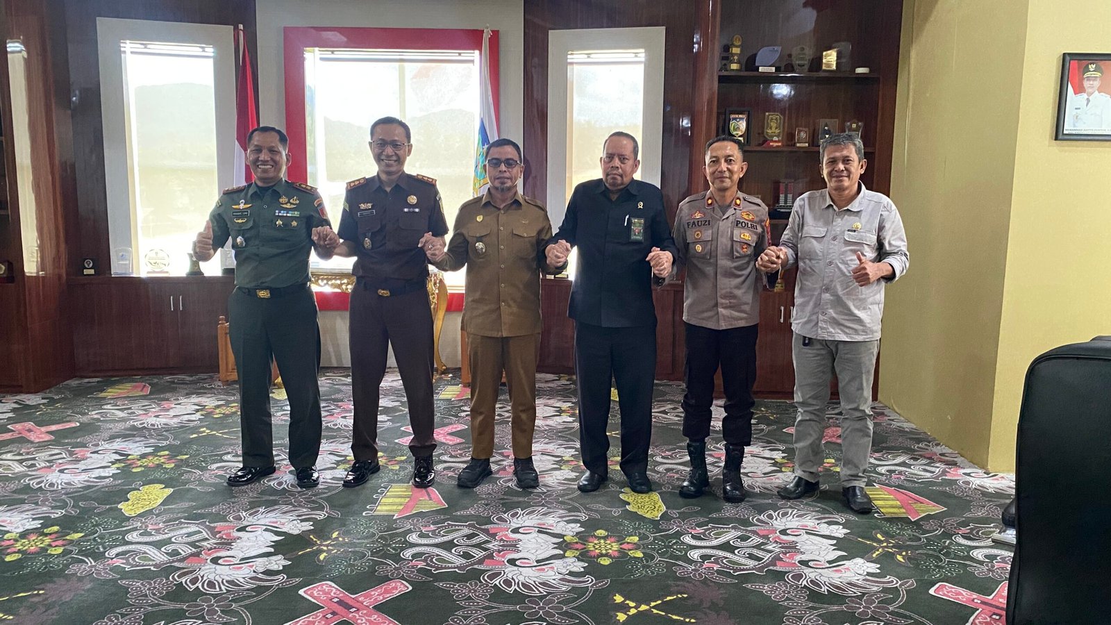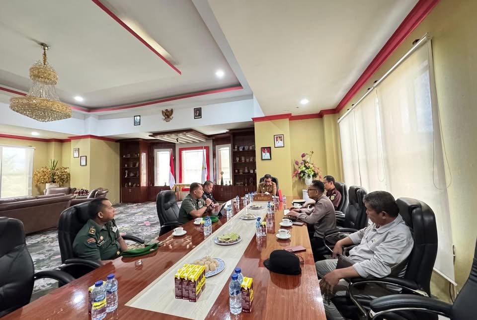 Bolmong Utara, Bupati Bolaang Mongondow Utara (Bolmong Utara), Dr. Sirajudin Lasena, SE., M.Ec.Dev memimpin rapat kerja bersama Forum Komunikasi Pimpinan Daerah (Forkopimda) terkait evaluasi kembali suasana kondusif dari berbagai bentuk ancaman, tantangan, hambatan dan gangguan di bidang politik, ekonomi, sosial, budaya, pertahanan keamanan dan ketertiban masyarakat, bertempat di ruang rapat bupati. Selasa (16/12/2025).