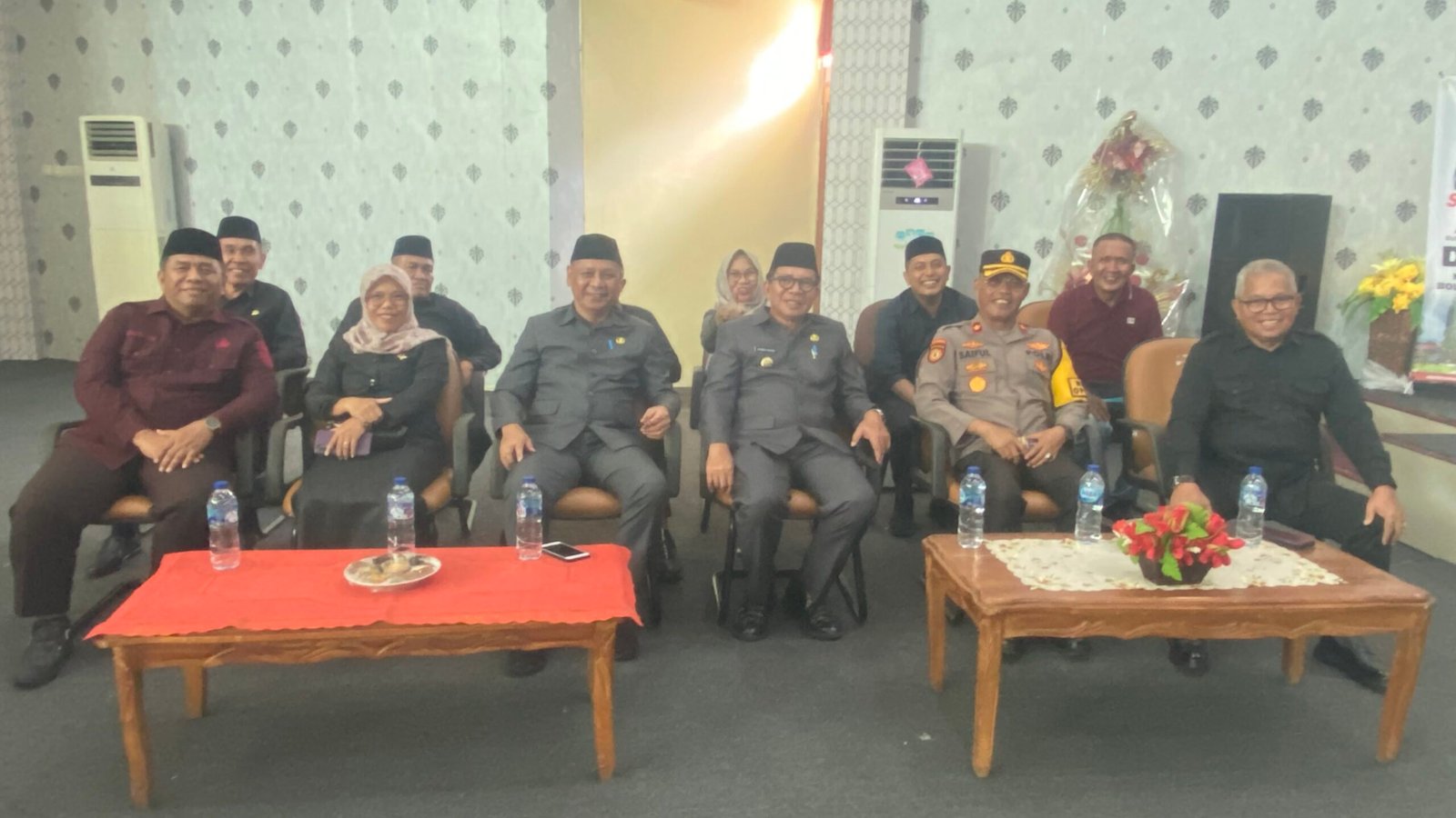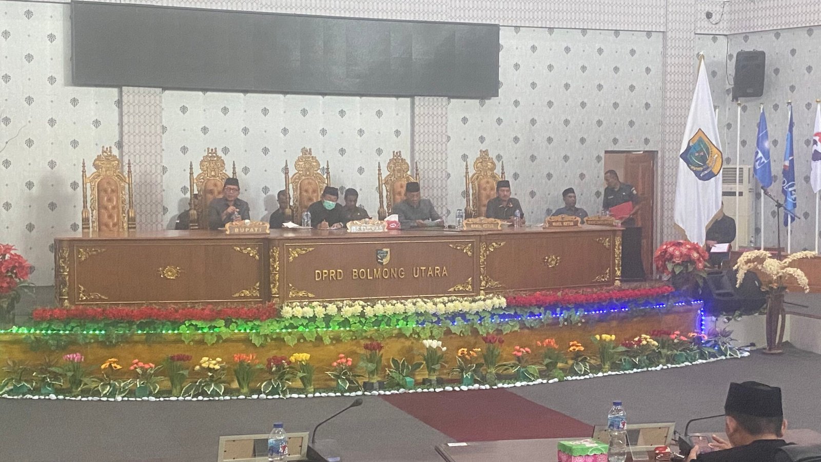 Rapat Paripurna berlangsung di ruang sidang DPRD dan dipimpin oleh Ketua DPRD Frangki Chendra bersama Wakil Ketua 1 Drs. Hi. Depri Pontoh, Wakil Ketua II Saiful Ambarak, S.PdI serta anggota DPRD lainnya.