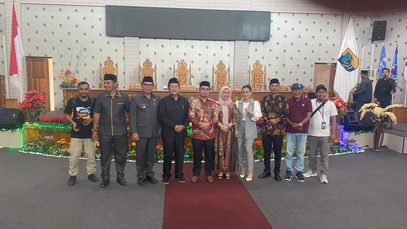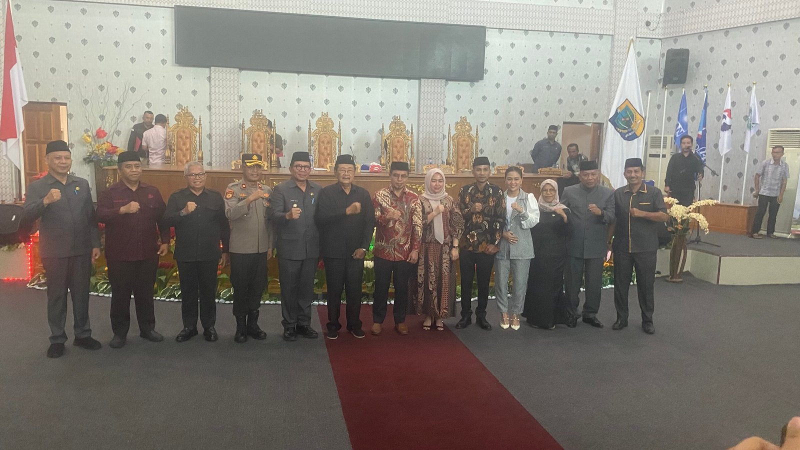 Di akhir rapat, Ketua dan Wakil Ketua DPRD bersama anggota DPRD serta para tamu yang hadir memberikan ucapan selamat secara langsung kepada calon bupati dan wakil bupati Bolmong Utara terpilih periode 2025-2030. *** GG