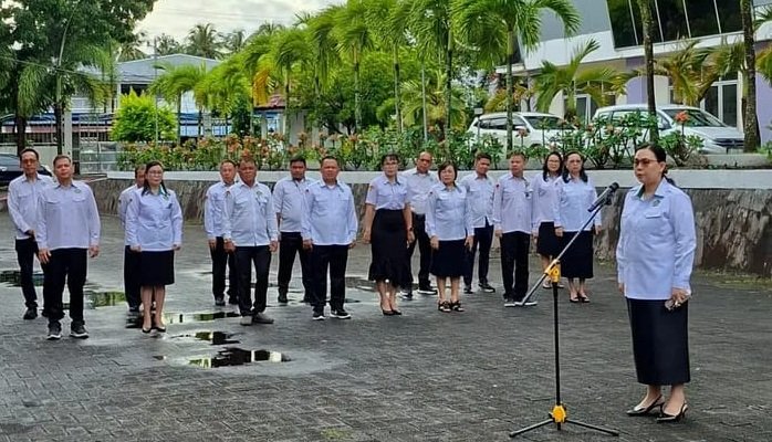 Hal ini disampaikan rektor saat bertindak sebagai pembina apel di awal kerja Tahun 2026, di Lapangan IAKN Manado, Senin (05/01/26), dihadapan seluruh dosen, dan tenaga kependidikan sebagai tanda dimulainya aktivitas kerja di awal tahun.