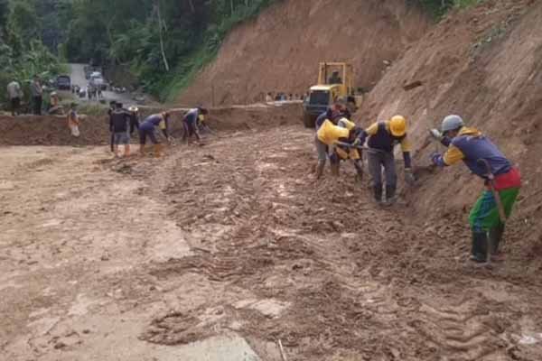 Alhamdulillah, sekarang sedang melakukan pembersihan longsoran matrial tanah. Mudah-mudahan hari ini bisa dilewati kendaraan roda dua maupun roda empat.