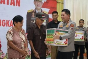MINSEL, Sulutnews.com — Polda Sulawesi Utara menyerahkan bantuan sosial (Bansos) berupa paket sembako kepada warga Minahasa Selatan khususnya di balai desa Pakuweru, Kecamatan Tenga, Kabupaten Minahasa Selatan, Kamis (26/6/2025).