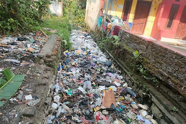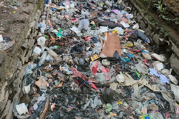 Sampah Menumpuk di Saluran Selokan Kampung Leuwiranji Lebak Banten
