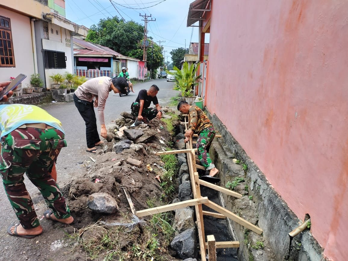 merupakan satu program TMMD Kodim 1310/Bitung dalam membantu kesulitan masyarakat untuk mempunyai saluran pembuangan air agar tidak terjadi genangan saat musim hujan tiba.