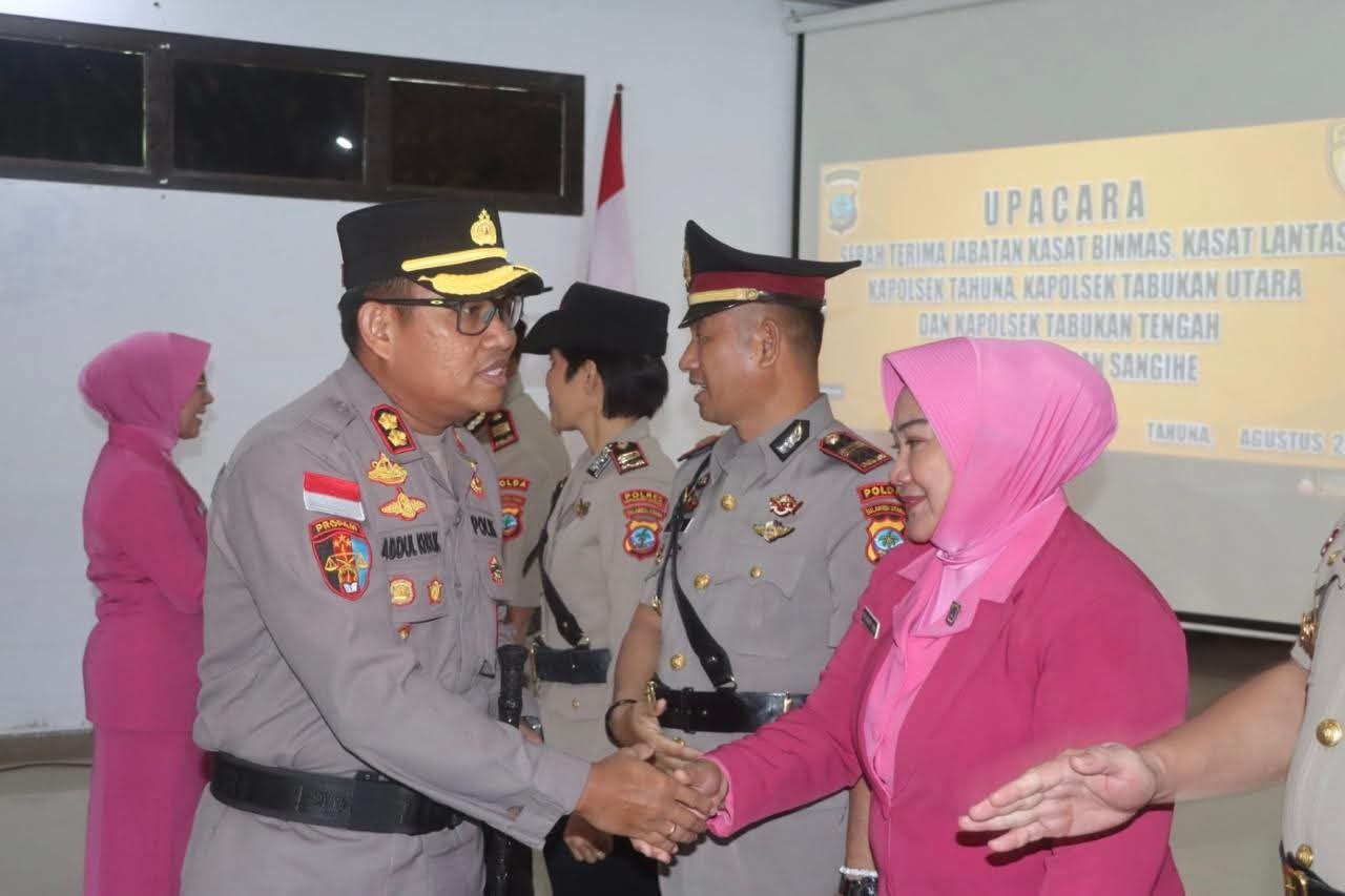 Adapun jabatan yang diserahterimakan meliputi Kapolsek Tahuna, Kapolsek Tabukan Tengah, Kapolsek Tabukan Utara, Kasat Lantas, dan Kasat Binmas. Prosesi pengambilan sumpah jabatan dan penandatanganan fakta integritas turut disaksikan oleh rohaniawan sebagai bentuk komitmen pejabat baru dalam melaksanakan tugas secara profesional, berintegritas, dan bertanggung jawab.