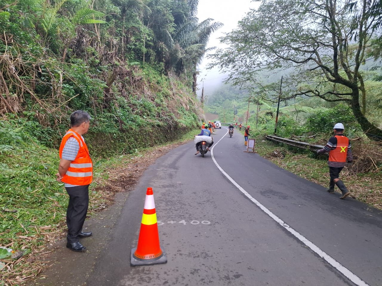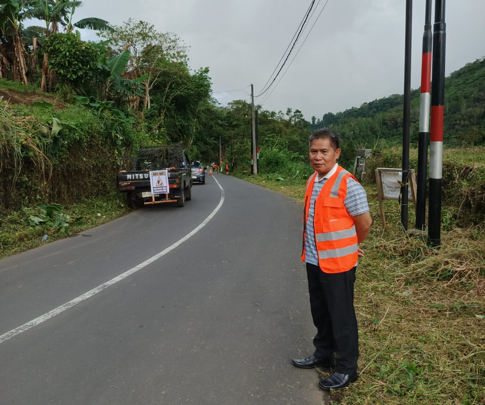 Foto – Pembersihan Rumput Yang Menutupi Ruas Jalan Tomohon- Tanawangko Minahasa dipantau Ventje Karundeng Kepala UPTD Wilayah 1 PUPR Sulut