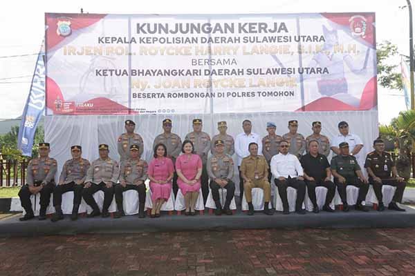 Kunjungan Kerja Kepala Kepolisian Daerah (Kapolda) Sulawesi Utara Irjen. Pol. Roycke Harry Langi, S.I.K., M.H. bersama Ketua Bhayangkari Daerah Sulawesi Utara Ny. Joan Roycke Langi beserta rombongan di Polres Tomohon