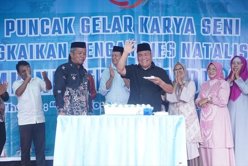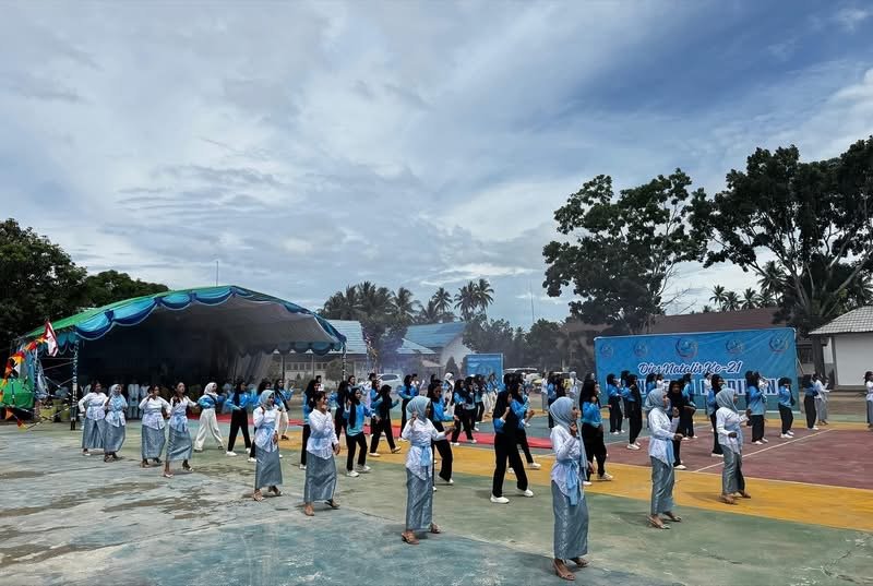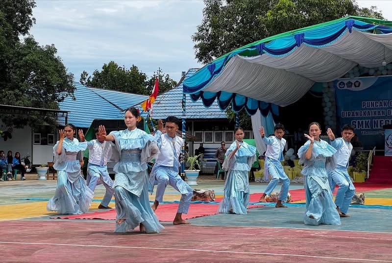 Prosesi Potong Kue Ulang Tahun Dies Natalis Ke-21 Tahun 2025 oleh Asisten 3 di dampingi Kepsek SMK Negeri 1 Kaidipang Ansar Nusa