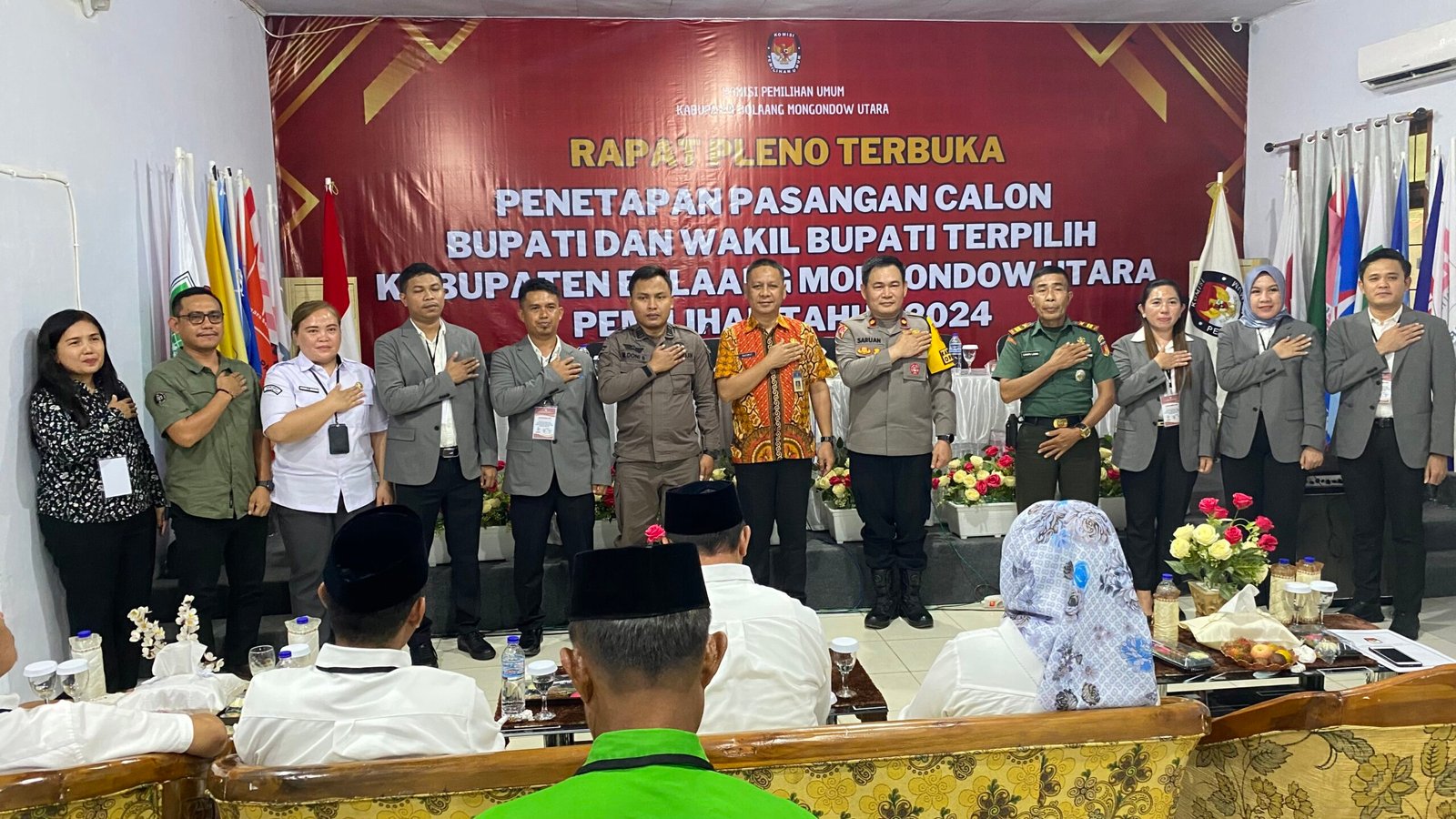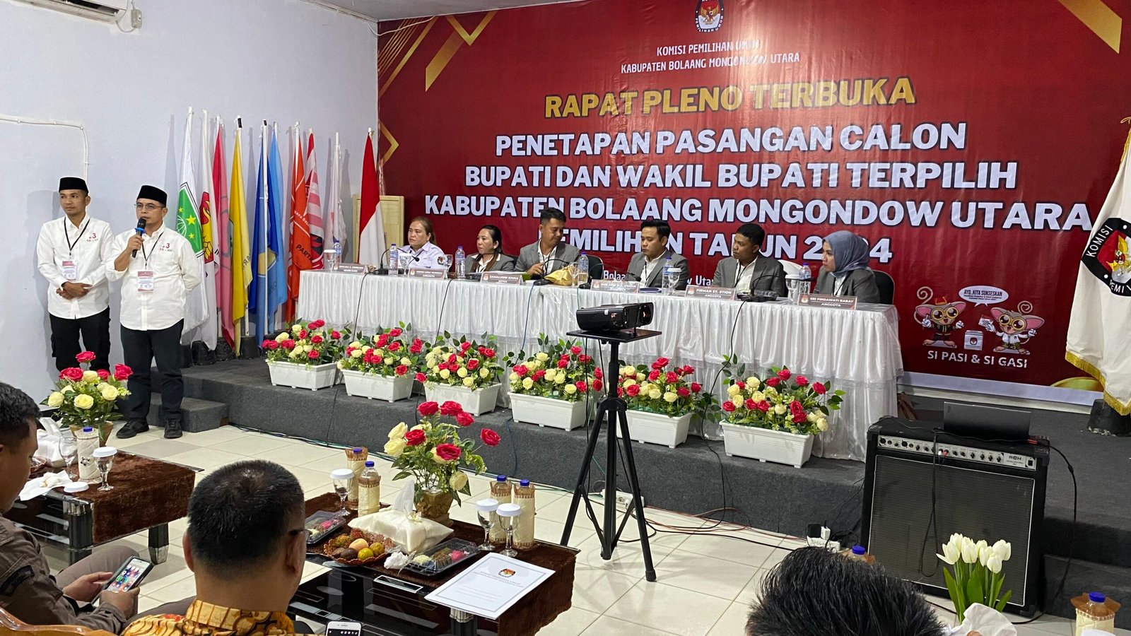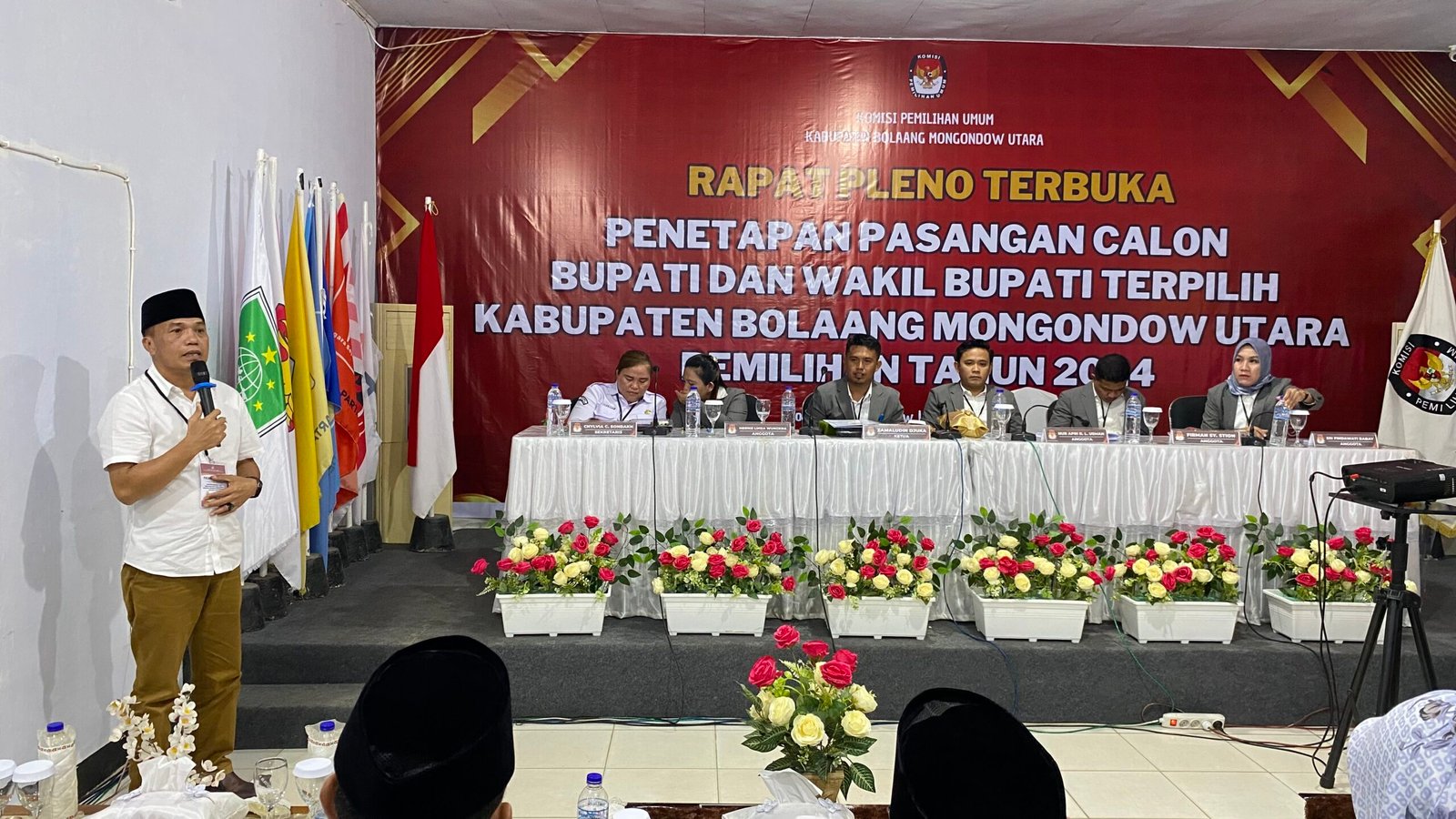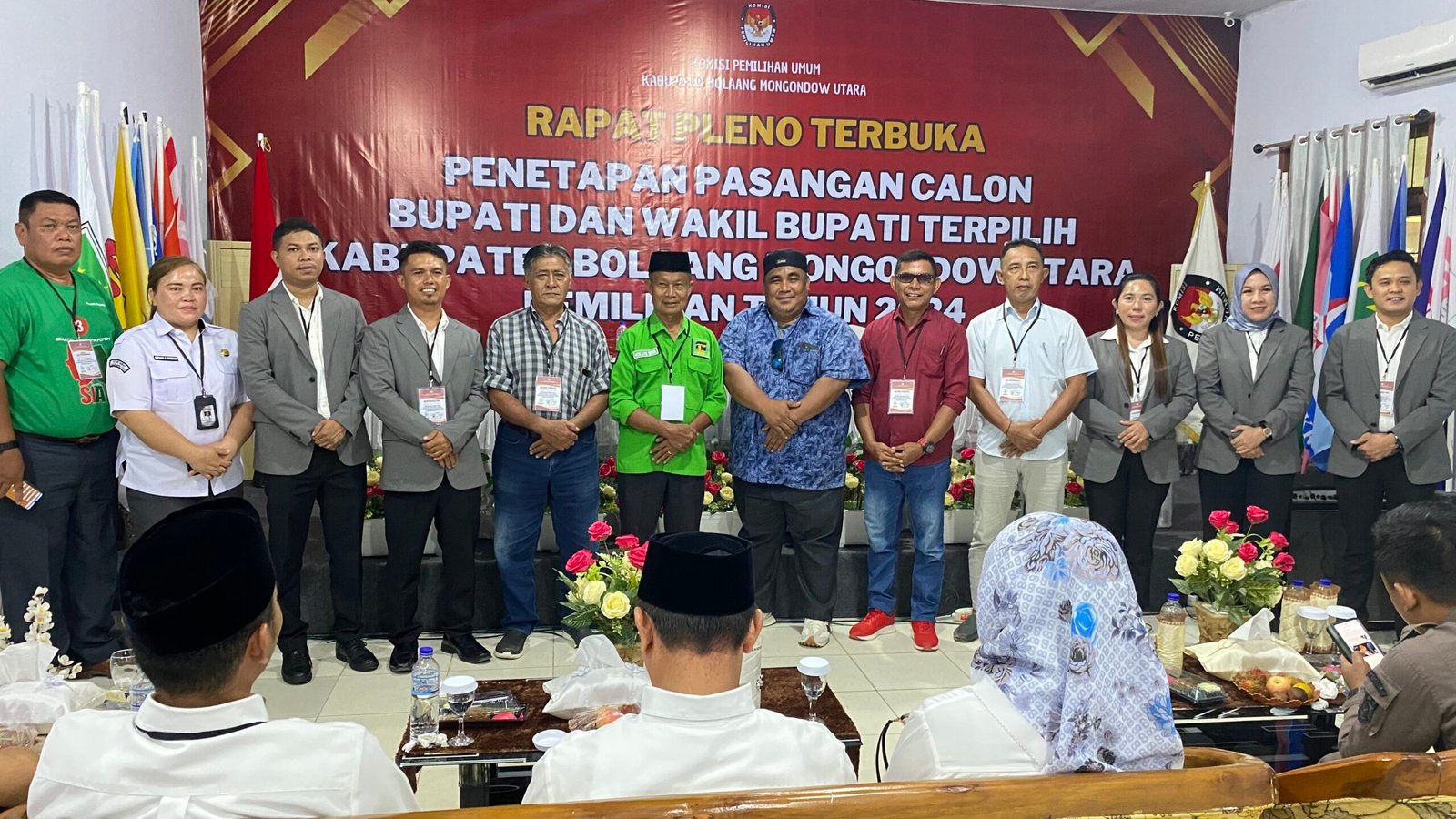 Acara Rapat Pleno Terbuka Penetapan Pasangan Calon Bupati dan Wakil Bupati Kabupaten Bolaang Mongondow Utara Terpilih Tahun 2024 bertempat di Kantor KPU Kabupaten Bolaang Mongondow Utara.