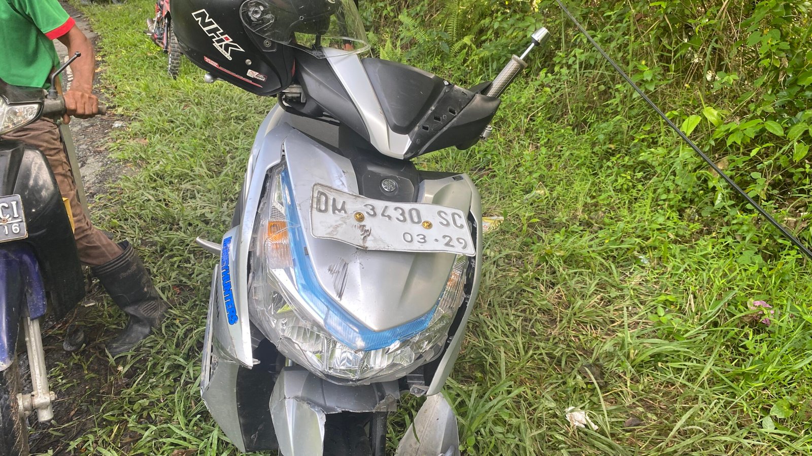 Dua petugas patroli jalan raya Polres Bolmong Raya berada di lokasi kecelakaan. Menurut mereka tidak ada korban jiwa hanya membawa pengendara motor ke puskesmas terdekat.