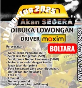 Menurut pimpinan Maxim Bolmong Utara (Boltara) Rekruitmen akan dicanangkan secara resmi tanggal 17 Agustus 2025.