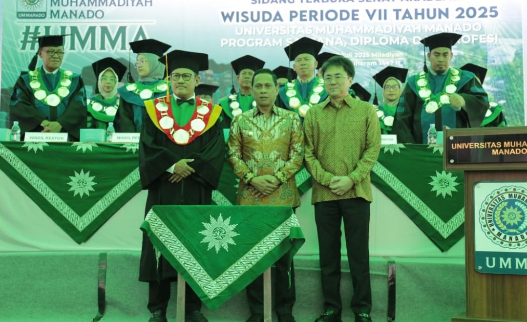 “Saya atas nama pribadi dan atas nama jajaran Pemerintah Daerah Kota Kotamobagu ingin menyampaikan ucapan selamat dan sukses kepada Wisudawan dan Wisudawati yang siang hari ini, baru saja mengikuti prosesi Wisuda Periode VII Tahun 2025, Program Sarjana, Diploma, dan Profesi pada Universitas Muhammadiyah Manado,” ujar Wali Kota.