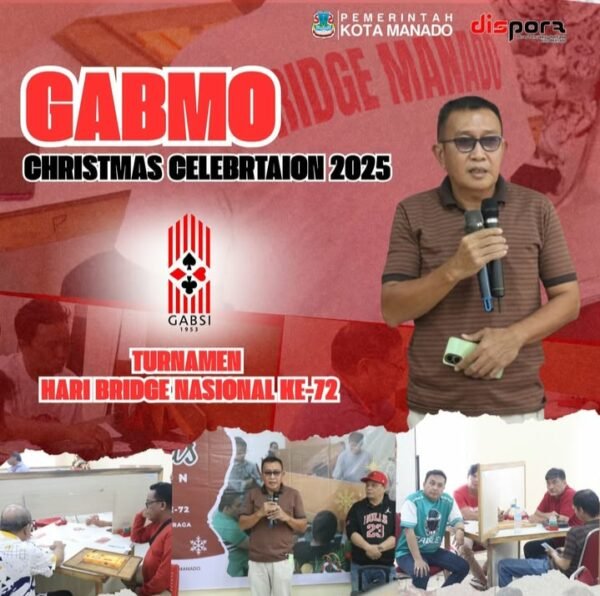 MANADO – Pemerintah Kota Manado melalui Dinas Pemuda dan Olahraga sukses menggelar iven bersama Gabungan Bridge Manado, dalam rangka Hari Bridge Nasional ke 72 Jumat 12 Desember 2025. Harke Tulenan dan Mario Mambu yang kembali berpasangan, berhasil meraih tempat pertama dalam turnamen pasangan yang diikuti oleh 25 pasang.