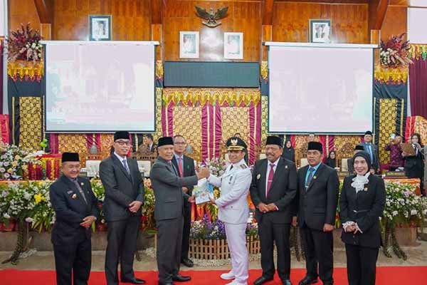 Prosesi serah terima dilakukan oleh Syamsul Effendi kepada bupati terpilih, M. Fikri, yang diwakili oleh wakilnya, Hendri Praja.
